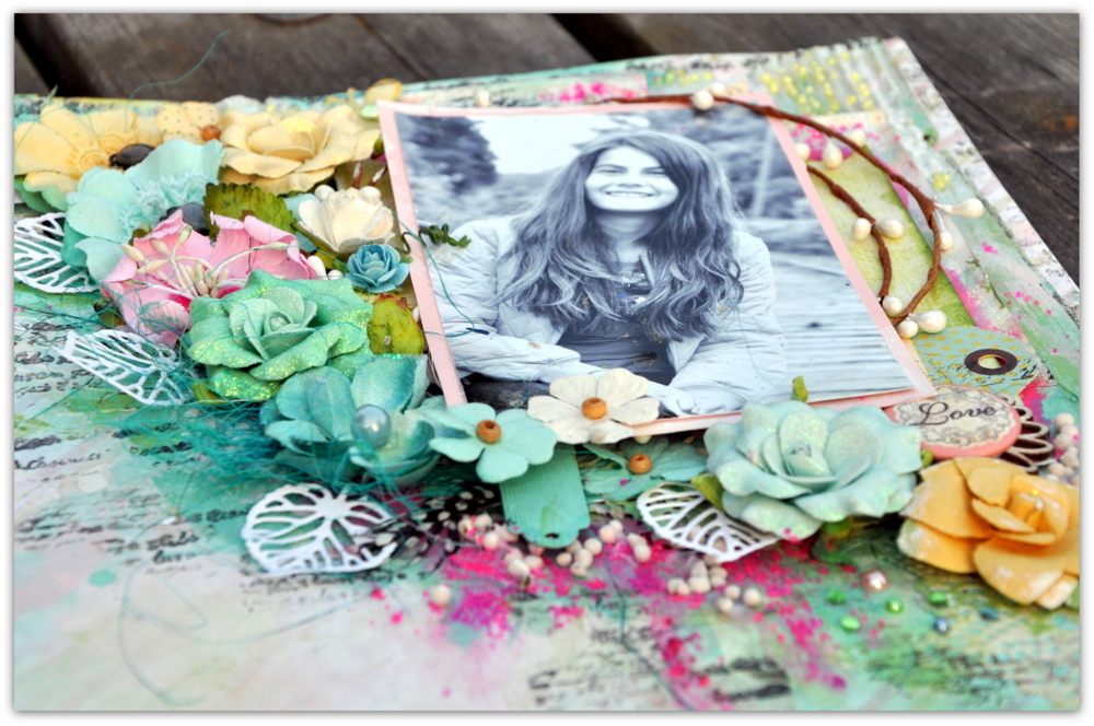 It has so many lovely elements! You decide what direction the page will take, and this time I wanted to take the more clean and simple route. I still used more or less my usual techniques so it still feels like me, if you get what I mean... :-)