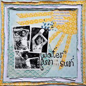 I cut out a sun roughly on free hand and sew it to my layout. I rather enjoy the rough look of it.
